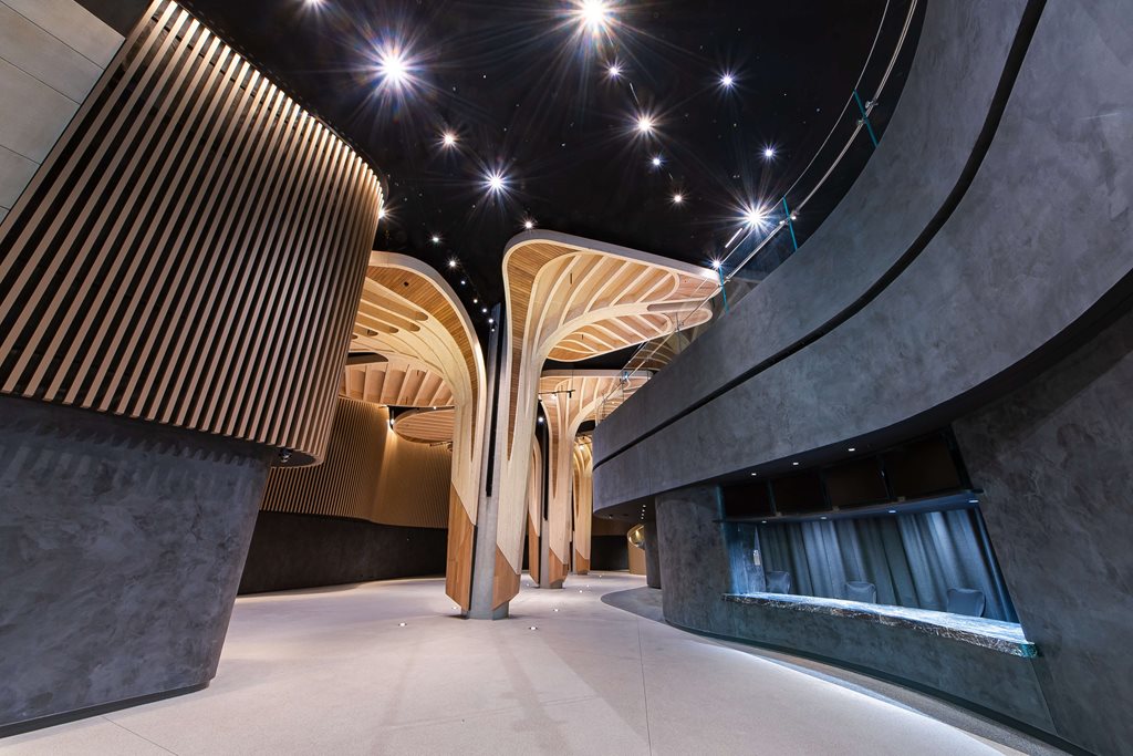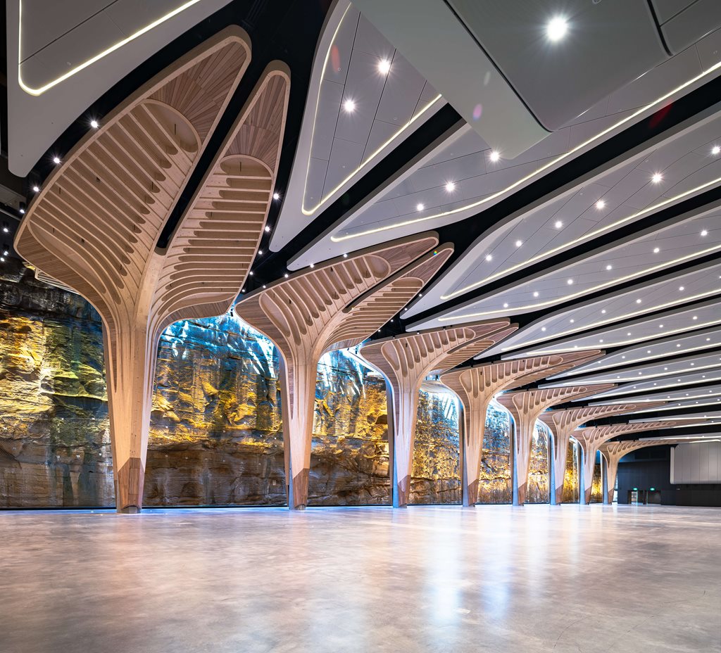 - 13 beautifully sculptural timber trees surround the concrete pillars with nine in the main event hall, three in the pre‑function space, and one at the entrance.